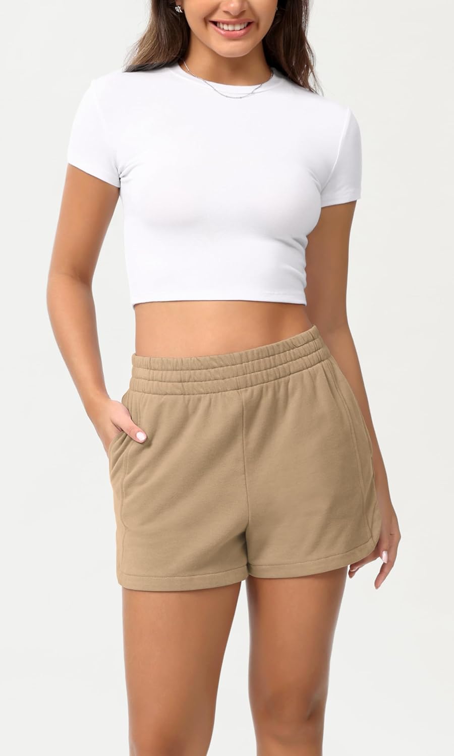 ODODOS Women’s Sweat Shorts Cotton French Terry Curved Hem Workout Casual Relaxed Lounge Shorts with Pockets(Incense)