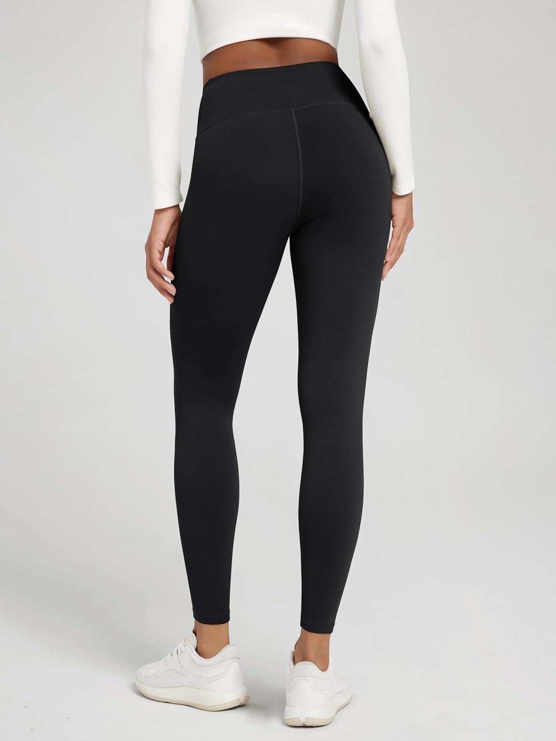 ODODOS Women's Thick Fleece Lined Leggings Thermal Warm Winter Tights - 25" / 28" High Waisted Yoga Pants with Back Pockets(Black)