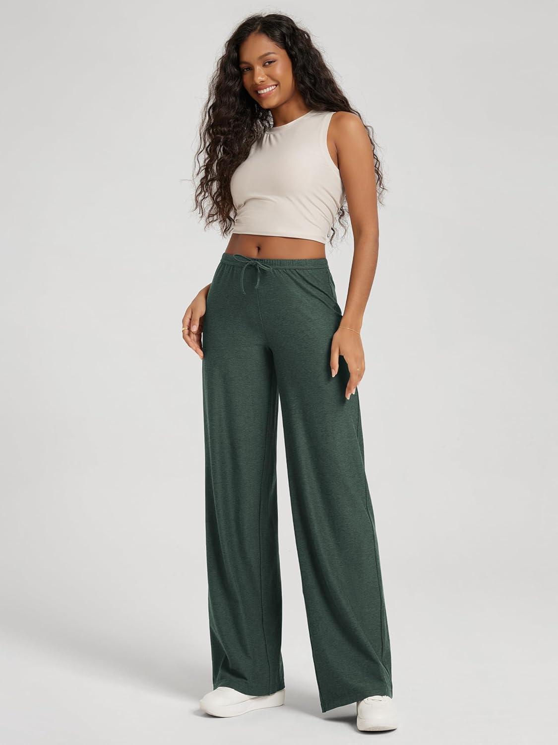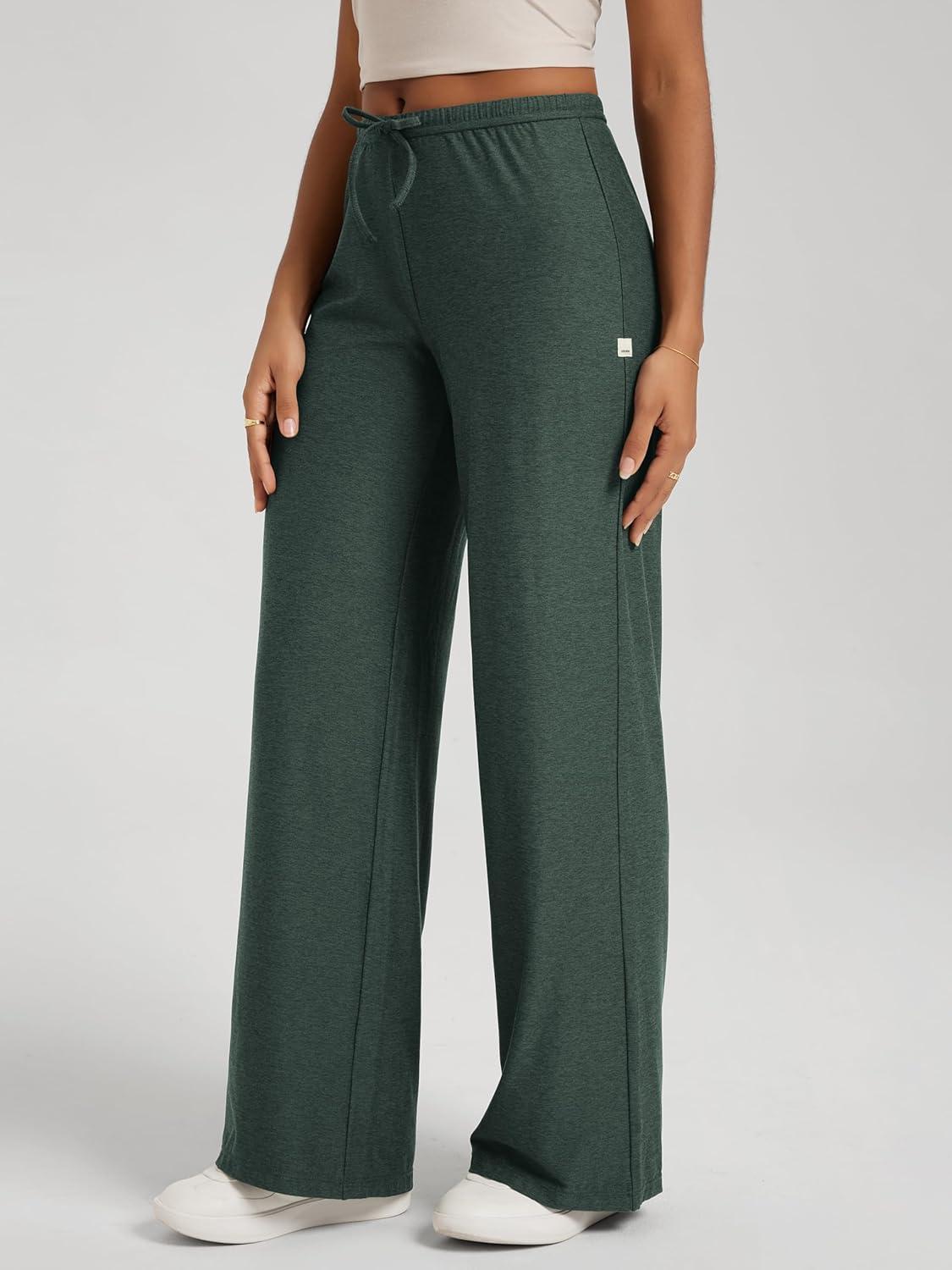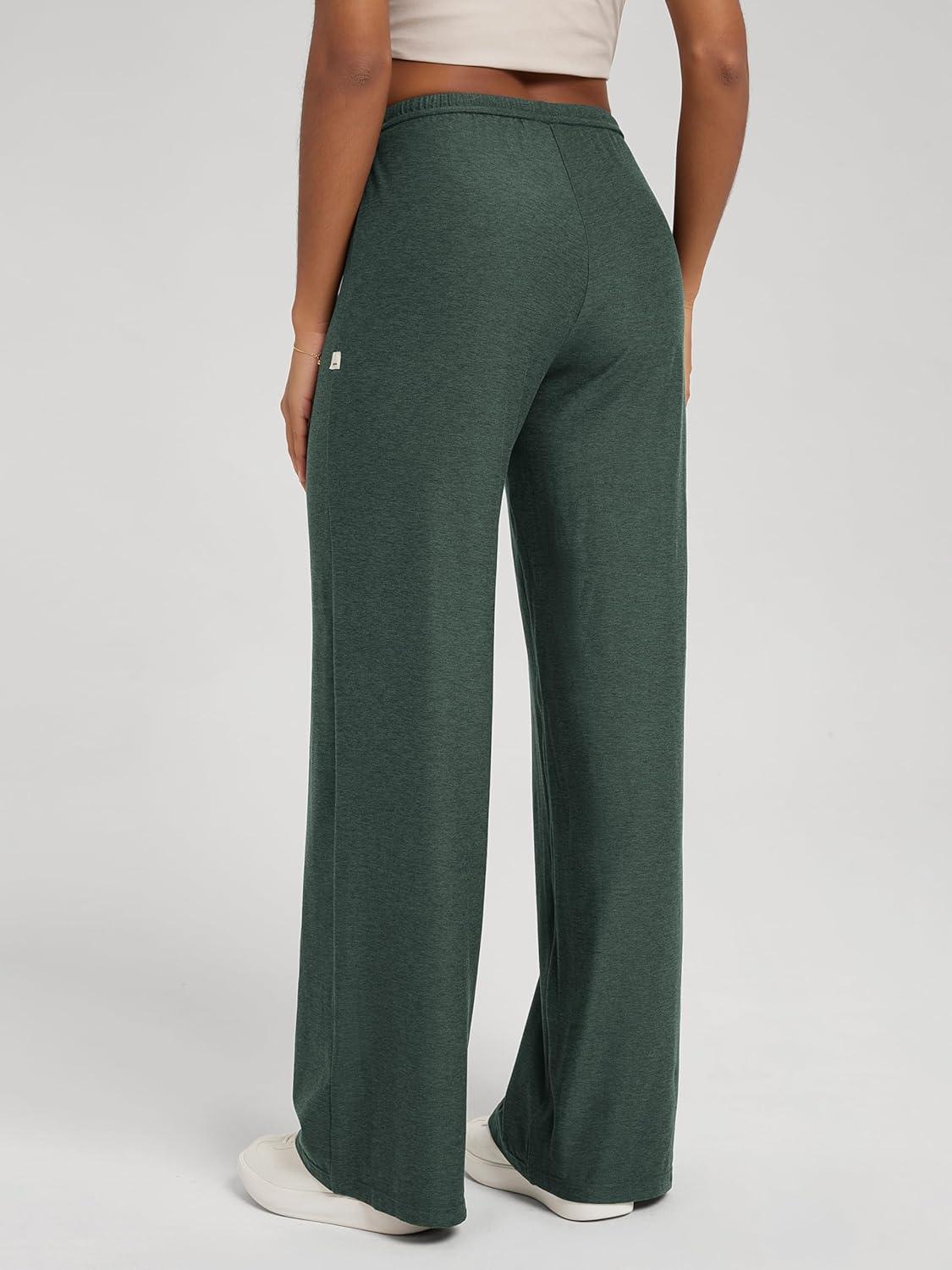 ODODOS Women’s Wide Leg Pants – Ultra Soft Stratum Tech Adjustable Mid-Rise Casual Pajama Lounge Pants(Aspen Heather)
