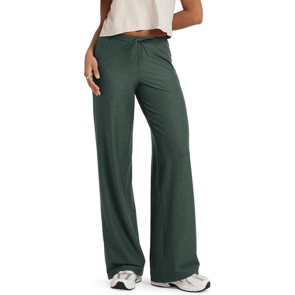 ODODOS Women's Wide Leg Pants - Ultra Soft Stratum Tech Adjustable Mid-Rise Casual Pajama Lounge Pants(Aspen Heather)