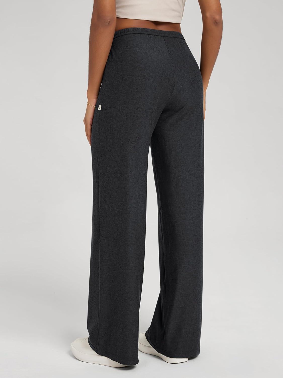 ODODOS Women's Wide Leg Pants - Ultra Soft Stratum Tech Adjustable Mid-Rise Casual Pajama Lounge Pants(Black Heather)
