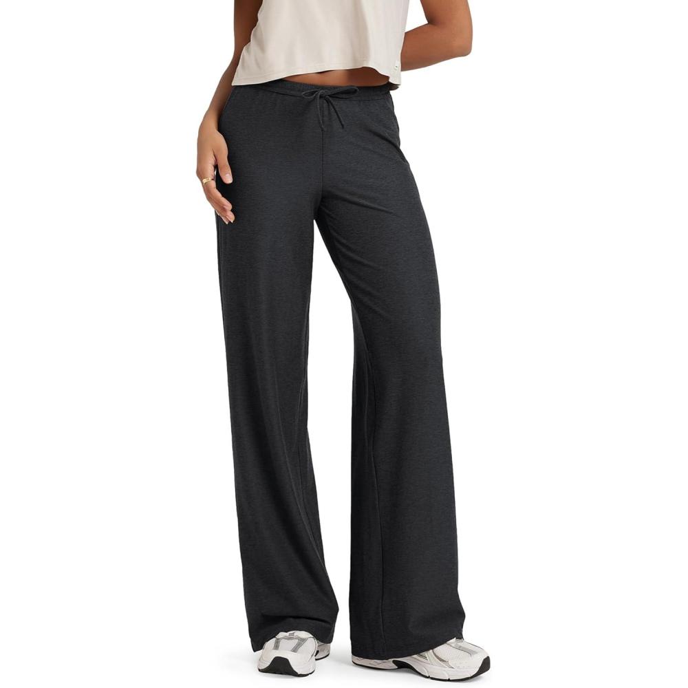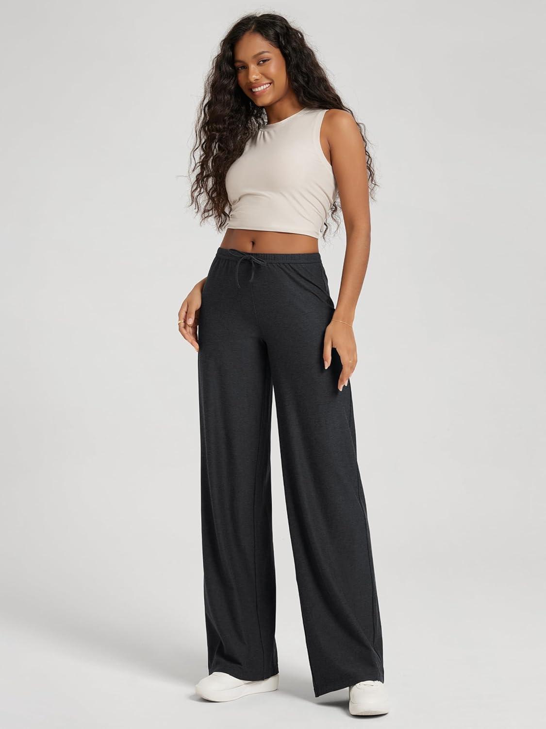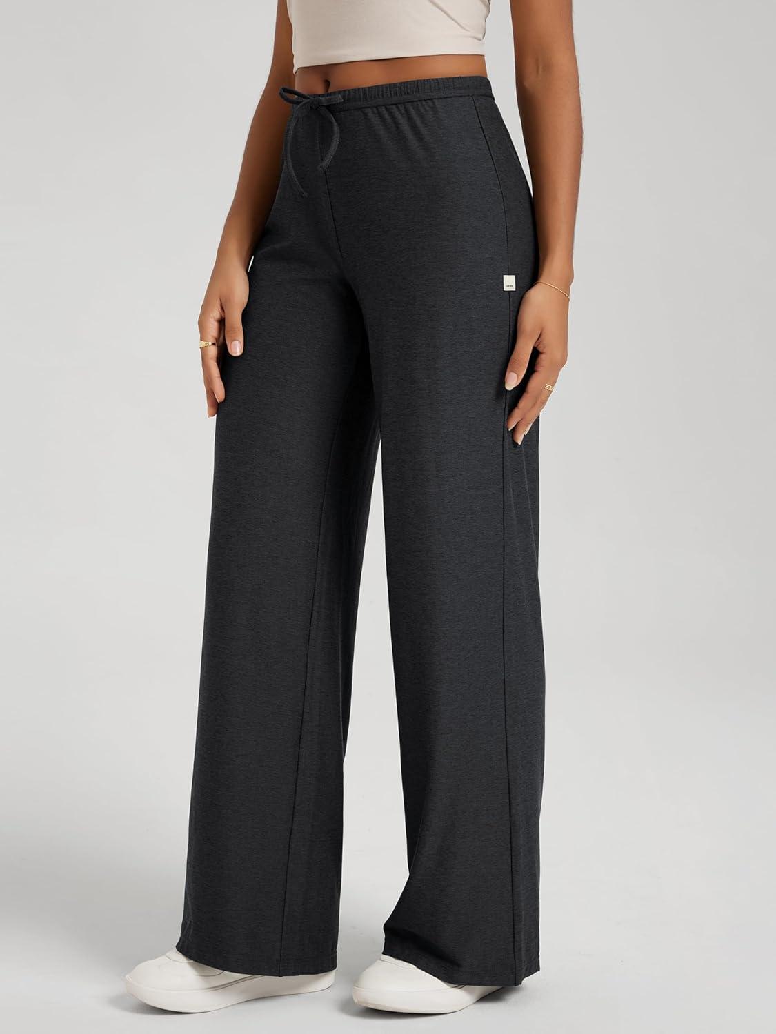 ODODOS Women’s Wide Leg Pants – Ultra Soft Stratum Tech Adjustable Mid-Rise Casual Pajama Lounge Pants(Charcoal Heather)