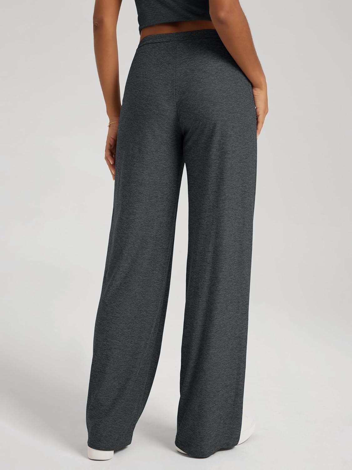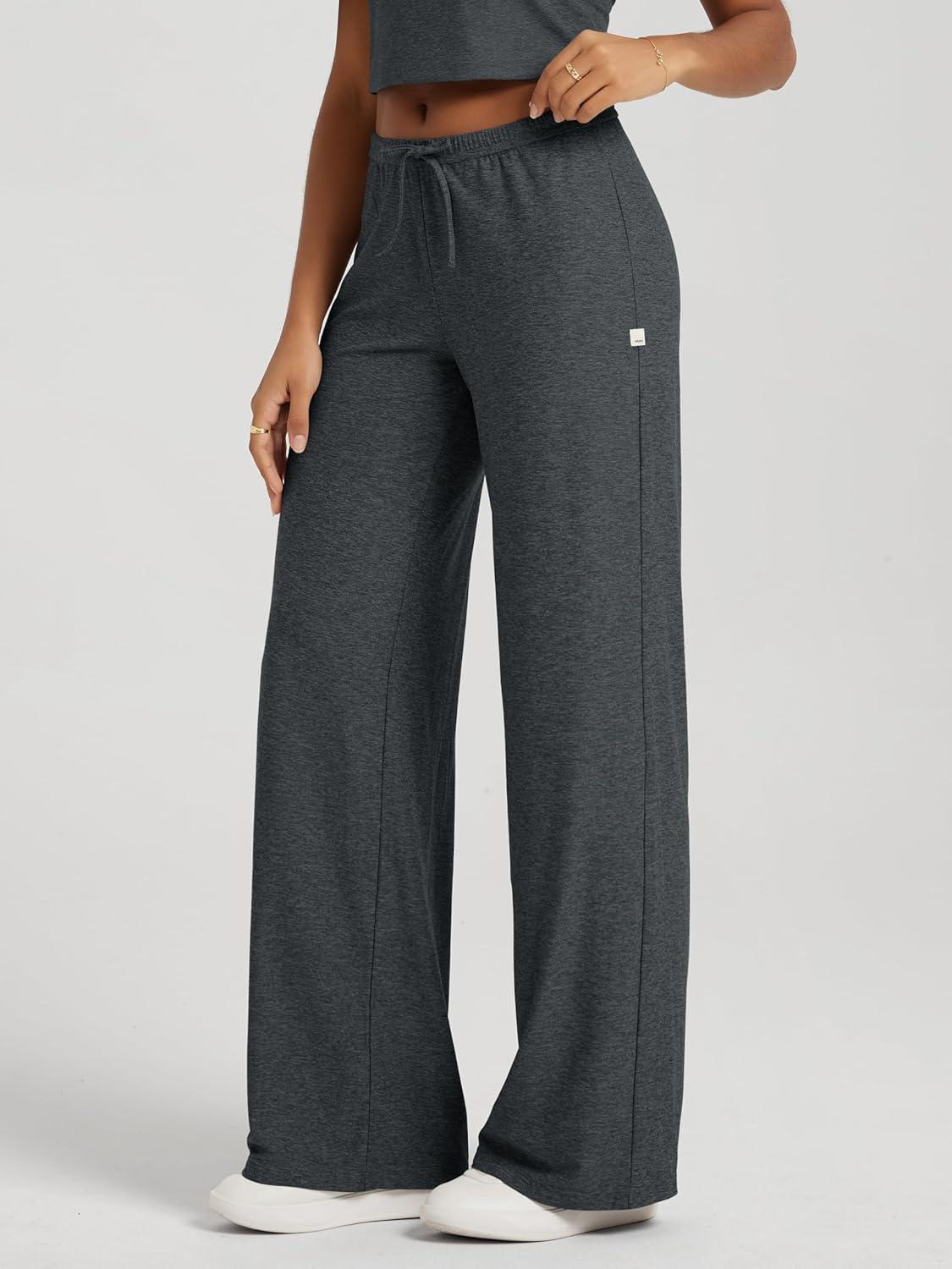ODODOS Women’s Wide Leg Pants – Ultra Soft Stratum Tech Adjustable Mid-Rise Casual Pajama Lounge Pants(Charcoal Heather)