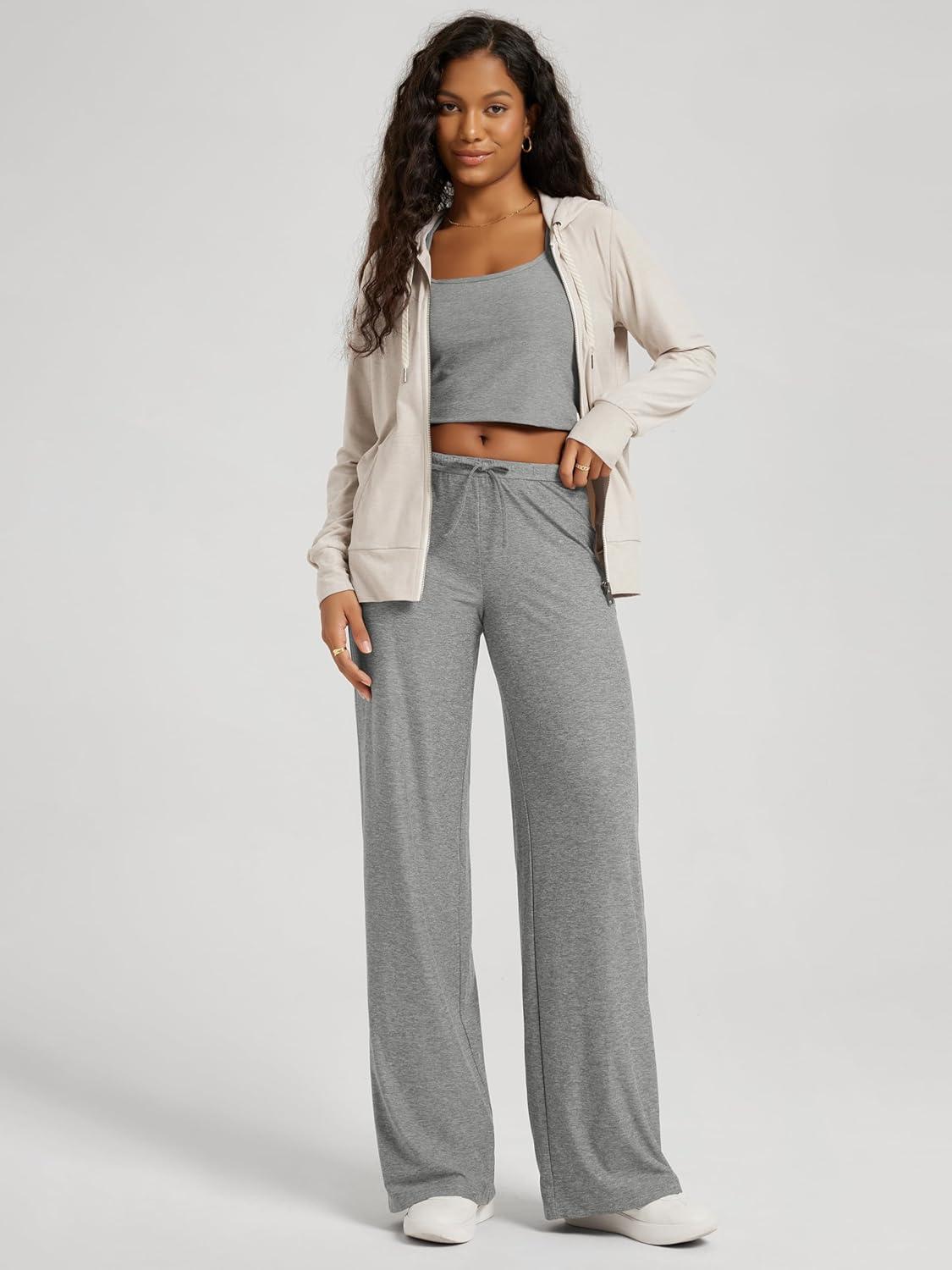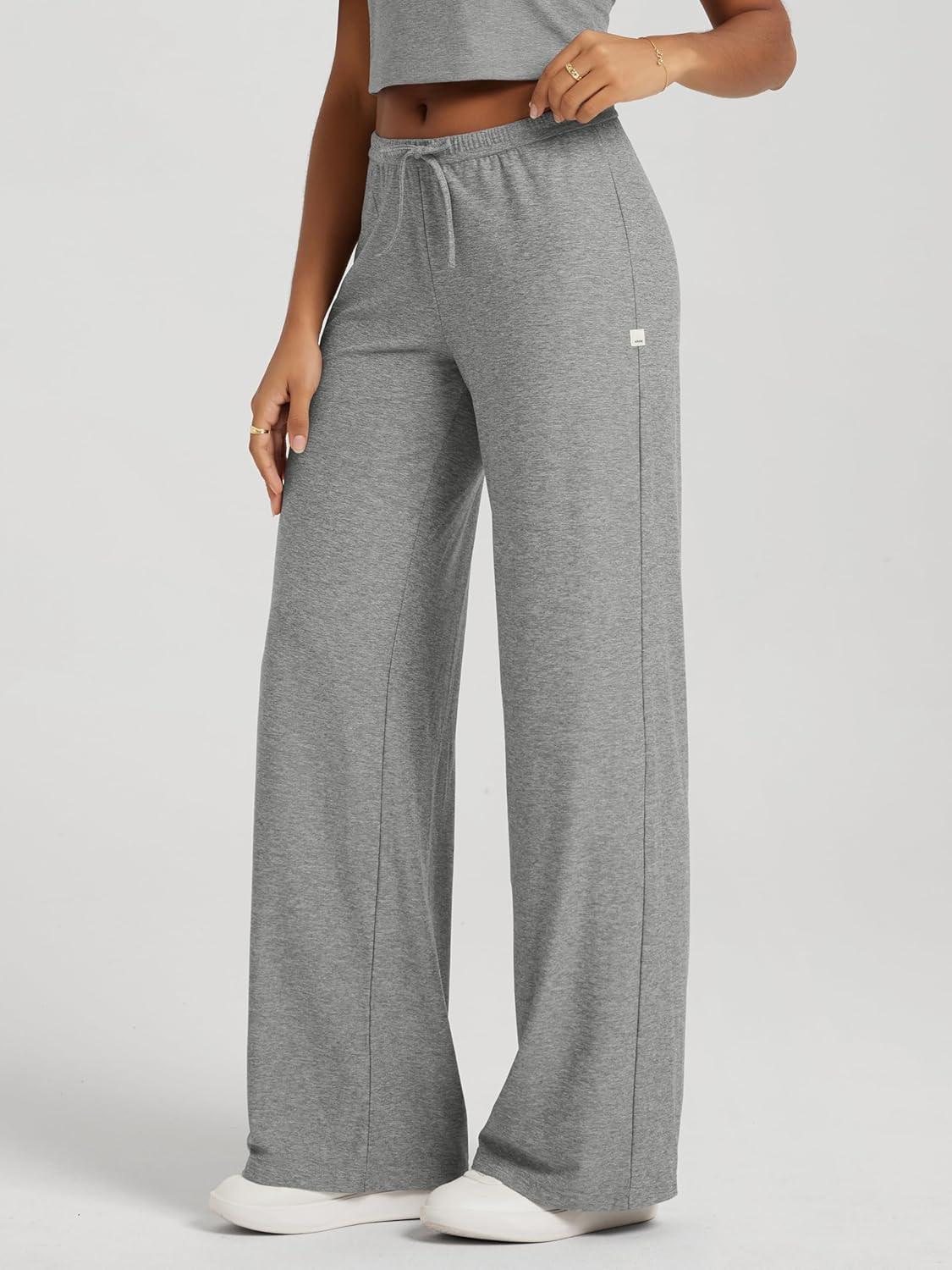 ODODOS Women’s Wide Leg Pants – Ultra Soft Stratum Tech Adjustable Mid-Rise Casual Pajama Lounge Pants(Grey Heather)