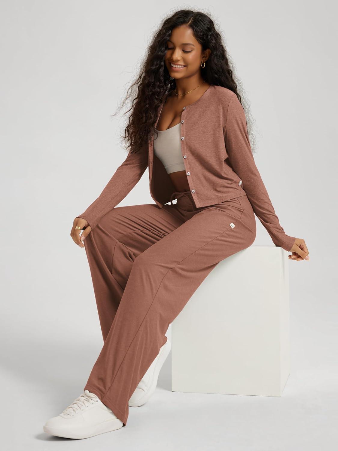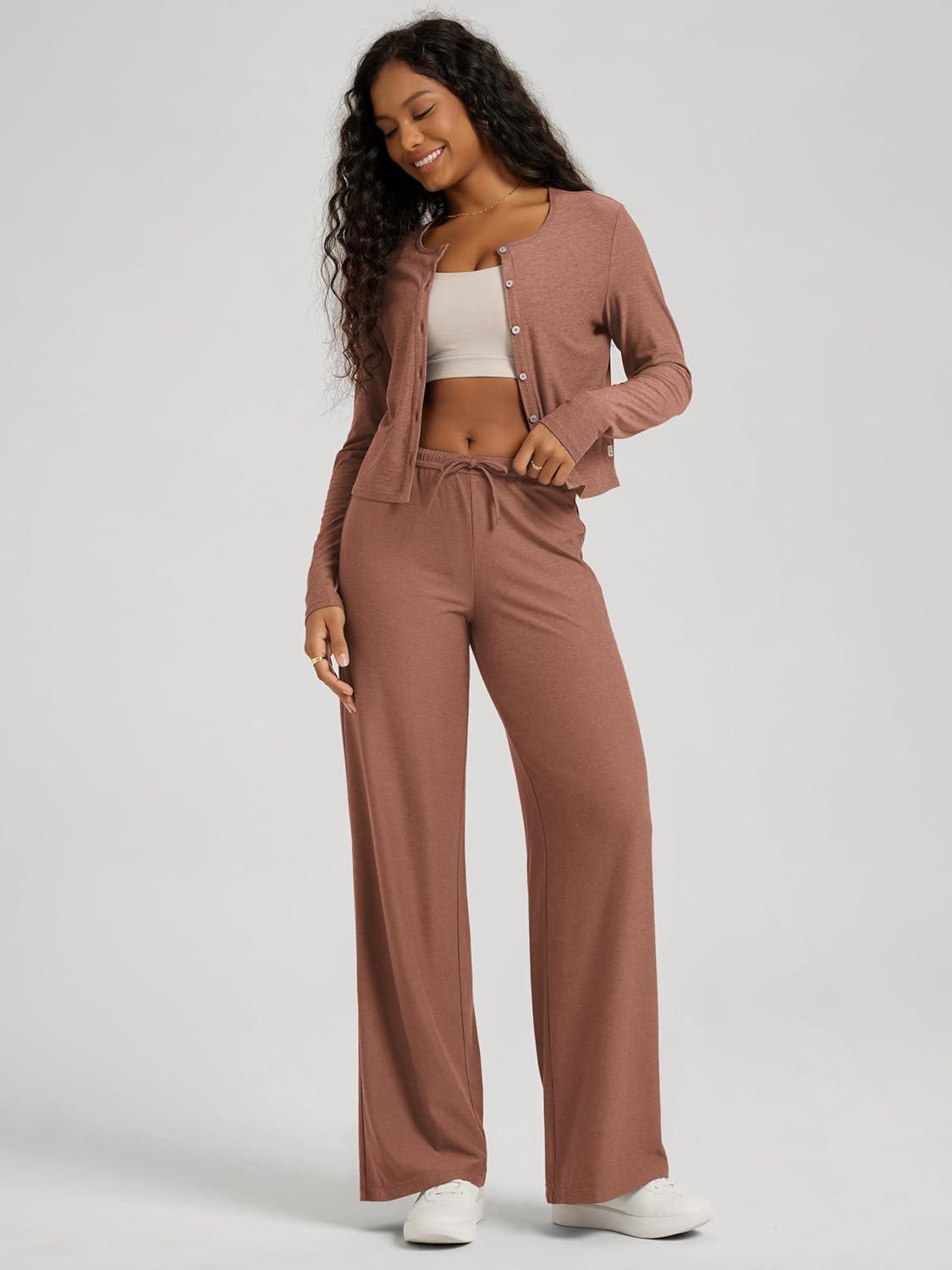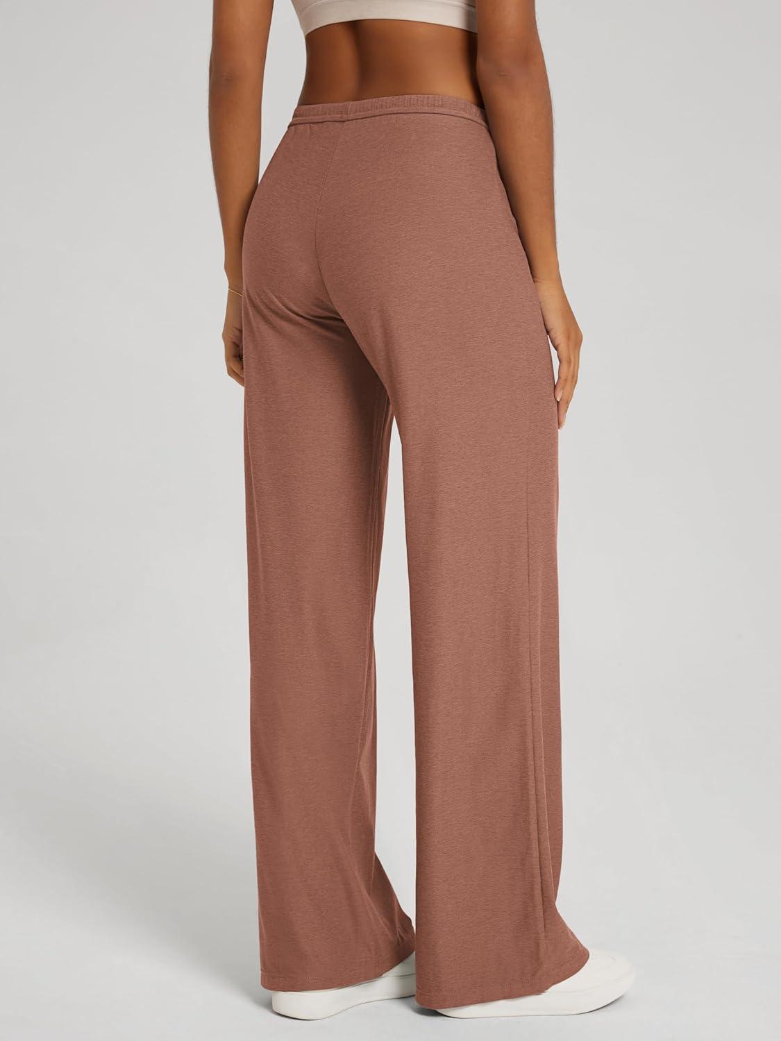 ODODOS Women’s Wide Leg Pants – Ultra Soft Stratum Tech Adjustable Mid-Rise Casual Pajama Lounge Pants(Tamarind Heather)