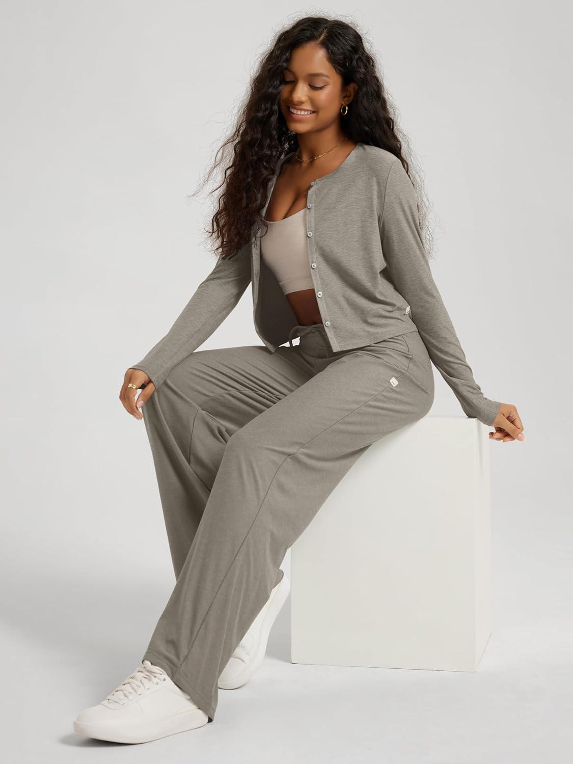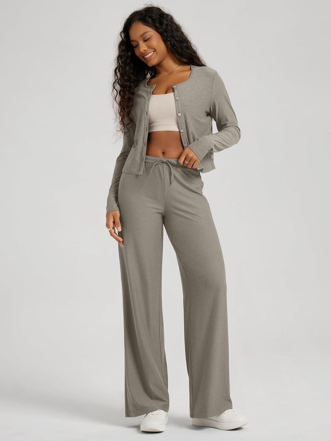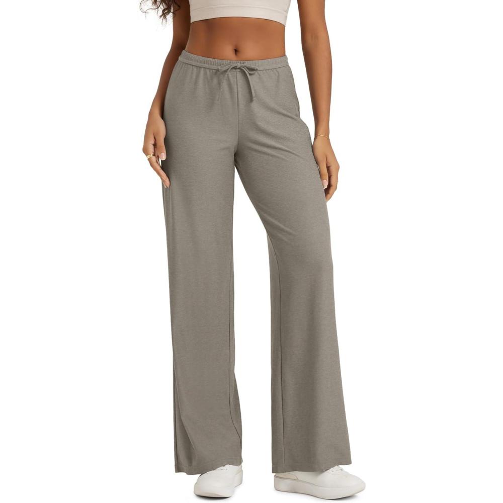 ODODOS Women’s Wide Leg Pants – Ultra Soft Stratum Tech Adjustable Mid-Rise Casual Pajama Lounge Pants(Warm Grey Heather)