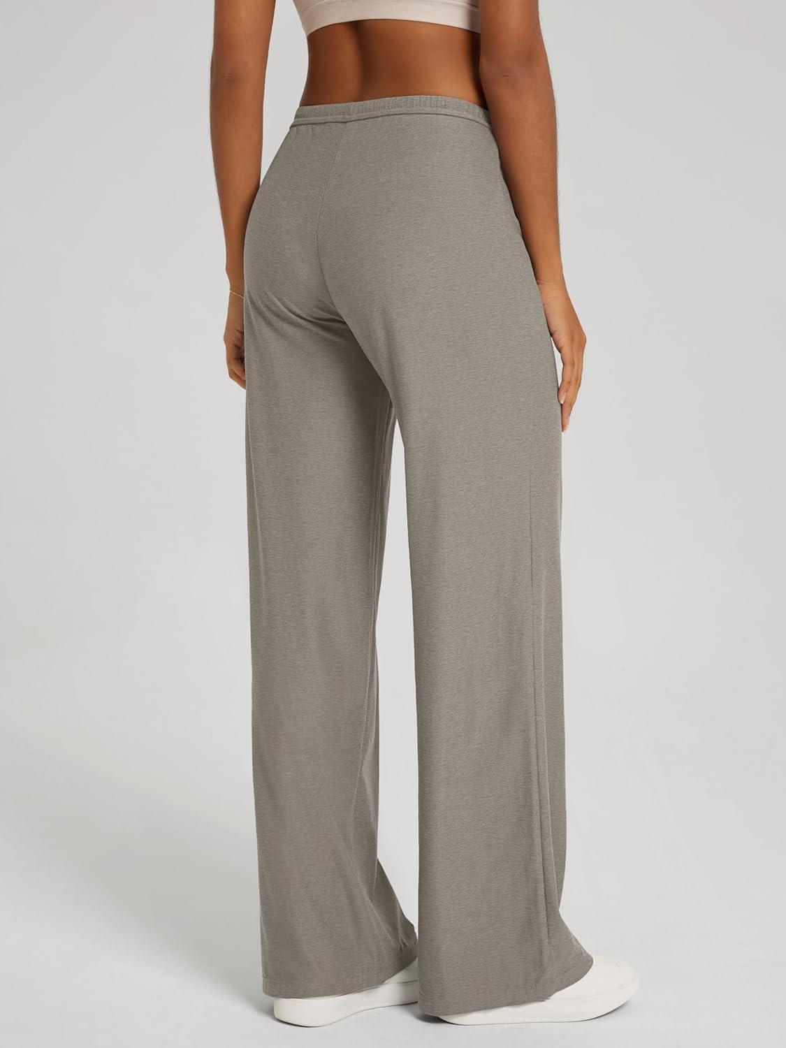 ODODOS Women's Wide Leg Pants - Ultra Soft Stratum Tech Adjustable Mid-Rise Casual Pajama Lounge Pants(Warm Grey Heather)